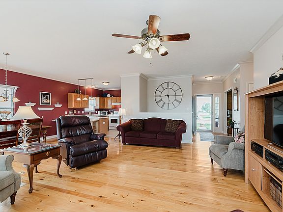Discover the perfect blend of comfort and convenience in this stunning residence located in the sought-after Bristol subdivision. Unlike most of this community, Touchdown is truly a custom home. She features 3 bedrooms & 3 full bathrooms, billiards, two interior living spaces, a large outdoor patio and a large covered patio, and 2 fireplaces! Step inside and be greeted by an open-concept layout with beautiful hardwood flooring (reclaimed and refinished from a 1940s barn). The layout flows seamlessly into a spacious kitchen complete with a pantry and a breakfast bar. The bedrooms are newly carpeted, ensuring a cozy and comfortable retreat. Outside, the oversized deck and lower-level covered patio overlook a serene pond with fountains, creating an ideal setting for gatherings. The deck even includes a natural gas grill for easy entertaining. The full, finished walkout basement offers a world of possibilities. It includes a workshop area that's perfect for hobbies or storage, and there's plenty of space to add a fourth bedroom. The tall garage provides ample storage. Plus, enjoy the benefits of a low-maintenance lifestyle with HOA dues covering a community pool, playground, and a basketball court! Don't miss the chance to own this truly unique and adaptable home, just minutes from Hamilton Town Center, top-rated schools, and major interstate access.