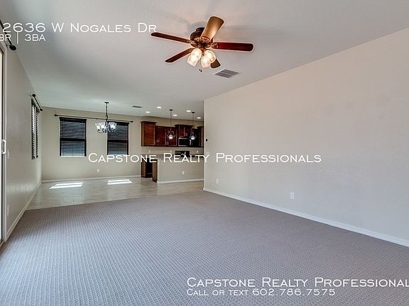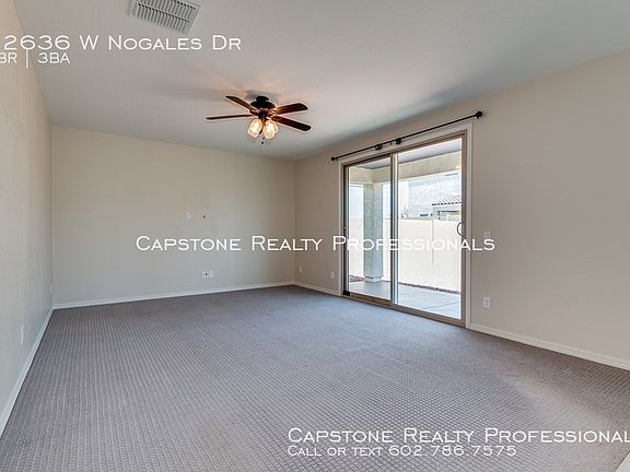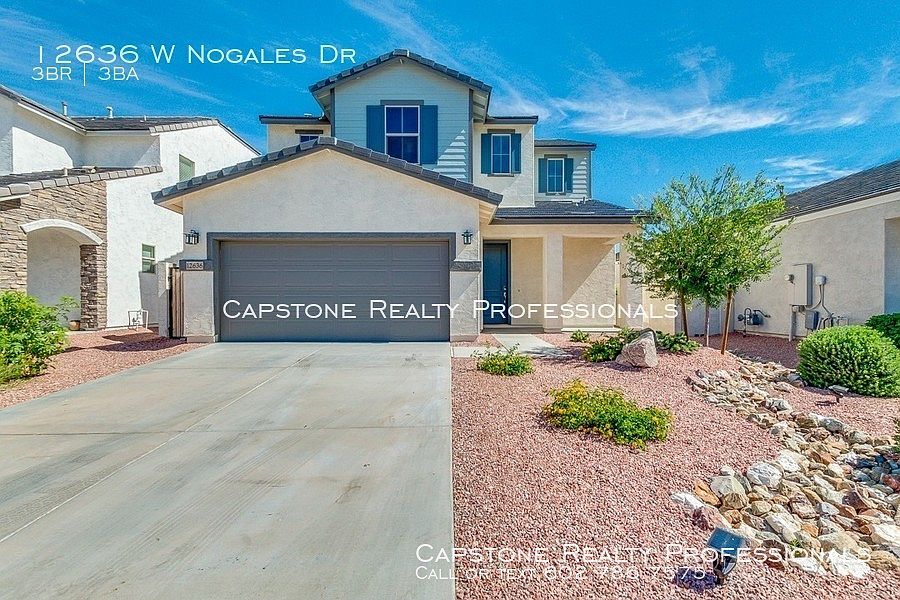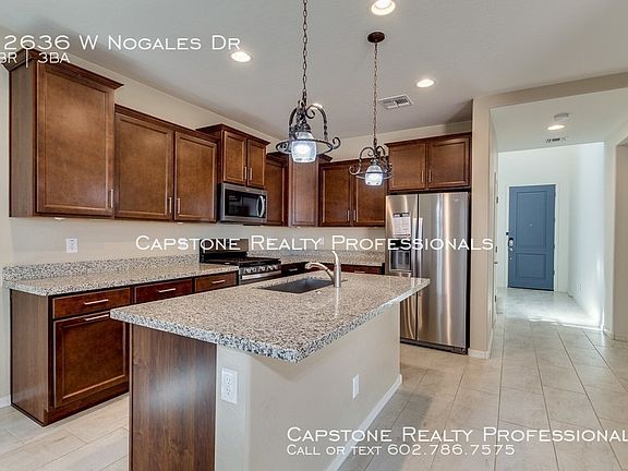 SCHEDULE A SHOWING ONLINE AT: showmojo.com/lh/5bcc84b065 Gorgeous 3 Bedroom 2.5 Bath home in Sunleya Community with NO AGE RESTRICTIONS! This new home is available for immediate move-in! Home features beautiful tile flooring and new carpet throughout the bedrooms, separate family room area, open kitchen with kitchen island, stainless steel appliances, and a walk-in pantry!! Additional highlights include a master bedroom split with full master bathroom, double sink vanity, master walk-in closet, and an easy to maintain front and backyard! Other amenities include 3 Car garage, inside laundry with washer and dryer hookups, community playground and so much more! Don't miss out on this great location within Peoria School District, near plenty of shopping centers, restaurants, and the 303 Freeway don't miss out on this lovely home! * Prior to applying please confirm pet policy* 3 Car Garage Community Children's Payground Double Sink Vanity Dual Pane Windows Full Master Bathroom Full Master Bedroom Granite Counter Tops Kitchen Island Private Toilet Room Range Oven/Elec Walk In Pantry
