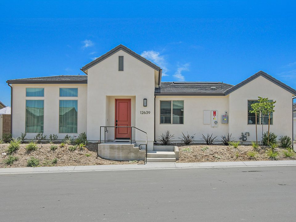This stunning single story home features 3 bedrooms, 2 bathrooms, 1500 sf., open concept with high ceilings, light and bright, gourmet kitchen, stainless steel appliances, integrated smart home, washer and dryer, AC, luxury vinyl plank flooring, custom window coverings, Solar, Tesla EV charger, private backyard, community pool. Easy access 15 and 56 Freeways and premier shoping centers.