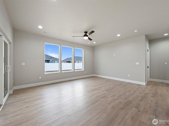 Large covered patioMaster suiteWalk-in closetPrivate bathroomGreat roomThree spacious bedroomsDining area