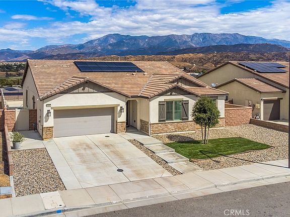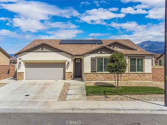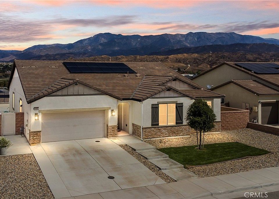 Welcome to Summerwind Trails! Impeccable turn-key single story home offers the perfect balance of modern luxury and natural tranquility. Seamless open concept flow is designed for effortless living and entertaining. Sleek kitchen features a large center island with seating, stainless steel appliances, granite counter tops & a stylish tile backsplash. The plethora of windows in the living and kitchen area fill the home with natural light. Spacious primary suite includes a generously sized walk-in closet with custom cabinetry. This home is perfectly positioned to capture uninterrupted, sweeping vistas of the majestic mountains from inside or outside the home! Highly desired location with convenient access to the 10 freeway, convenience centers, schools, community park & the HOA walking trails.
