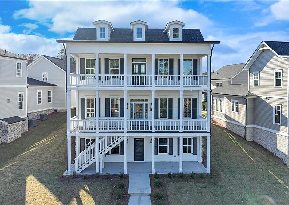 **$25,000 flex cash available with approved lender** Welcome to one of the distinguished “Six Sisters” in Homestead at Hog Mountain - a remarkable home envisioned by our preferred architect, Alison Ramsey. Inspired by San Francisco’s celebrated “Painted Ladies,” this residence captures timeless character with a modern twist. Spanning three thoughtfully designed levels, it offers 5 bedrooms and 5.5 bathrooms, with versatile spaces ideal for everyday living or multi-generational arrangements. The main level showcases an inviting open kitchen with a large center island and adjoining dining area, a charming study or office accented by a cozy fireplace, and a bright sunroom that fills the home with natural light. Upstairs and down, every space has been crafted with flexibility in mind. The lower level includes its own private entrance and features 2 bedrooms, 2 bathrooms, and a spacious family or media room complete with a built-in kitchenette-creating the perfect setup for guests, extended family, or an independent living space. Adding even more opportunity, above the garage includes unfinished ADU space, ready to be transformed into a studio, office, or guest suite. Every inch of this home reflects thoughtful design and adaptability, offering a one-of-a-kind haven in one of the community’s most admired architectural collections.