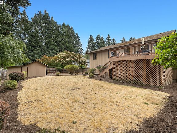 This 70's split level in a charming Tigard cul-de-sac gives you space to roam, a quiet street to call home and room to make it your own. Natural light streams into every room of 'The Tigard Lily', the flowing floor plan creates space inside and the big yard and outbuildings send urban farm vibes. Adorable kitchen/dining space with Dutch door leads to sunny deck and back yard with stunning Mimosa tree. Downstairs, you'll find a groovy paneled lounge space and bonus room, with a spacious laundry and half bath. Situated with Fanno Creek Trail, Dirksen Nature and Woodard Parks, and schools/playgrounds nearby, it's a convenient place for an active lifestyle in the heart of Bull Mountain. Attached two car garage and additional parking spaces make way for all the toys. Come see!