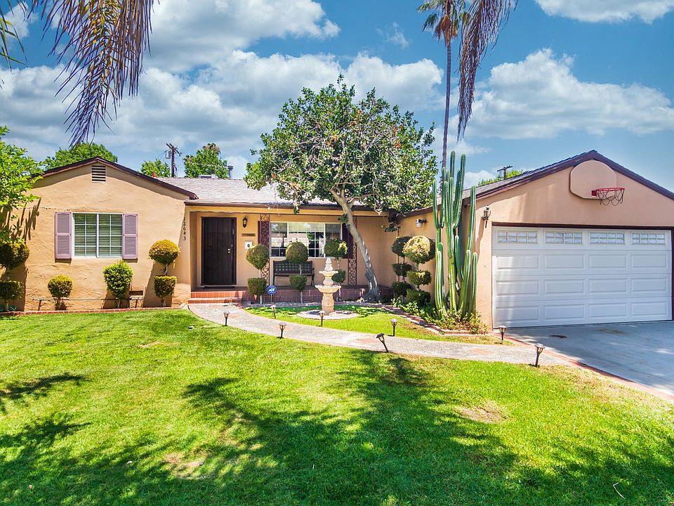 Hurry to the best opportunity available in beautiful Valley Village! This great home is over 2200 square feet on a huge 7900 SF lot. There are 4 spacious bedrooms including a gorgeous master suite with a walk-in closet and private bath. The living room has a fireplace and is open to the family room which overlooks the back yard and patio. The formal dining room has hardwood floors and leads to the kitchen area. The kitchen has stainless steel appliances, granite counters, and ample storage, plus a laundry room. Outdoors is a large covered patio ideal for entertaining, and a nice fenced grassy yard with mature fruit trees and a large storage shed. This home has amazing location and is very walk-able, has great square footage, and with a little TLC it will really shine!