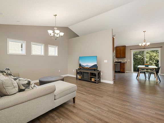 Step inside to discover a spacious, light-filled living area featuring vaulted ceilings combined with an open-concept layout that’s perfect for both entertaining and relaxation. The well-appointed kitchen boasts modern appliances, ample counter space, and an inviting view into your private backyard. The adjoining dining area provides a welcoming space for meals and gatherings.