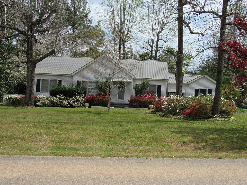 Two bedroom, 1.5 bath main house, with metal roof, aluminum siding, storm windows, and single-unit H&A/C. Large windows, carpet, and ceiling fans throughout the living areas. An updated kitchen with breakfast nook and pantry. The laundry room, with its sink and shelving, accesses the single car garage. In back, a carport for two cars, includes a sitting area with fan. The one bedroom guest house has its own utilities and driveway. The grounds include a circular drive, large garden area, year-round well, finished storage building, and many perennial shrubs and flower beds.
