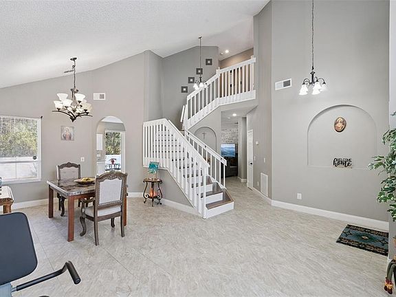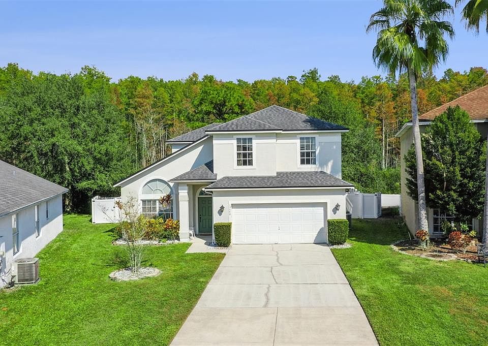 Located on a quiet street, with a large fenced backyard that backs up to tranquil conservation, you’ve just found your next home! TOUR THE HOUSE WITH THE VIRTUAL TOUR AND VIDEO WALK THROUGH LINKS. As you step in, the high ceilings and grand staircase will immediately catch your eye. Wander in to the updated kitchen complete with new stainless steel appliances, quartz countertops, and a built-in wine rack. The family cook will enjoy preparing meals with nature views from the kitchen sink, and always feeling like part of the action in the adjacent family room. The decorative fireplace in the family room is adorned with gorgeous stonework and adds a feeling of coziness to the heart of the home. Retreat upstairs to the primary suite, located at the rear of the house, overlooking the 1/5 acre lot and the tall trees of the rear conservation. With plenty of room for a king-sized bedroom suite, the primary bedroom also features a large bathroom with dual-sink vanity, tiled shower and separate soaker tub, as well as a large walk-in closet. The other 3 bedrooms are good size, and surround an additional full bathroom upstairs. This house also has a spacious laundry room on the ground floor with a utility sink, downstairs powder room, long driveway offering plenty of parking when friends and family gather, and the roof was replaced in 2017. With great shopping, restaurants, and groceries all nearby, you’ll find all of the conveniences you need at your fingertips. Plus, with quick access to the 417 and Turnpike, in under 20 minutes you can be to Orlando International Airport, Disney, Epic Universe, Sea World and more! Come see why people love to call this neighborhood home!