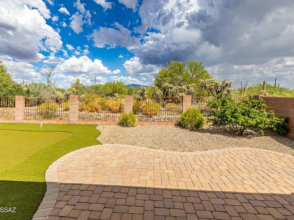 Private and serene location - located in gated Preserve community. Limited traffic subdivision. 3 bedrooms + open space room for den/office/library/crafts. Wide open great room concept plan. Kitchen opens nicely to great room and hosts stainless steel appliances and lovely staggered cabinetry. Very nice laundry room with folding station, sink and abundant storage cabinets. Lovely plantation shutters can be found throughout home. Fabulous backyard w/beautiful extended brick pavers, putting green., Catalina and Tortolita Mountain views plus backs to nature. It's a great backyard.