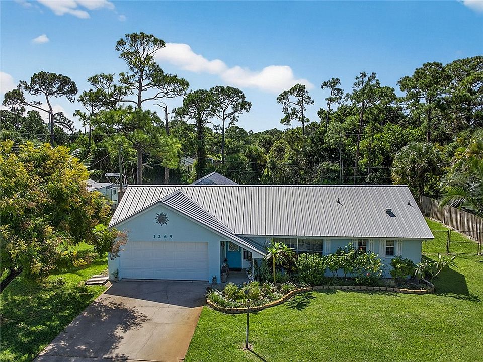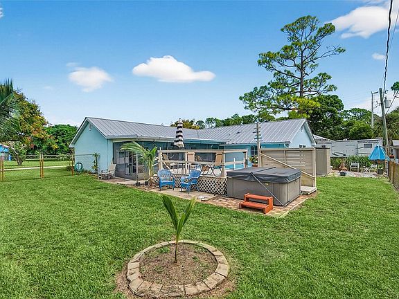 Indoor and outdoor living at its best! This charming 3-bedroom, 2-bedroom home has everything you're looking for. Exterior features fresh paint, a standing seam metal roof, a new drainfield, a tranquil fish pond, an above-ground pool, an outdoor kitchen in the screened patio, a new sprinkler system, 220-amp electric, and a generator hook-up. Inside features fresh paint, new can lighting, vinyl plank floors in living areas, updated bathrooms, a new water heater, and a thoughtfully laid out floor plan. Located near all Vero has to offer. Room sizes are approximate and subject to error.