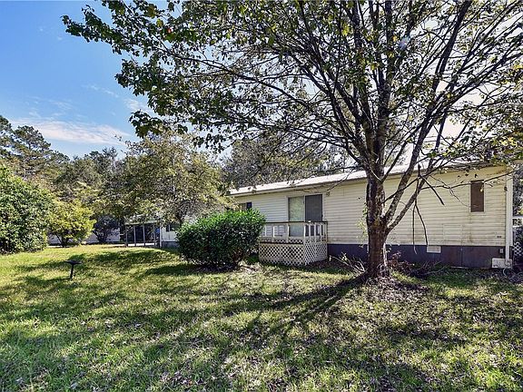 Looking for privacy? This 32x64 Three bedroom/two bath mobile home on 3.02 Acres may be just what you are looking for. Also included with the sale is a 24x36 (864 sq ft) Rec house/game room or could be used for additional rental income. The Rec house has full living area, kitchenette, full bathroom, & washer/dryer connection. The main home features very spacious living room, kitchen with breakfast bar, large primary bedroom with ensuite bath and walk-in closet, 2 additional guest rooms, guest bath, laundry and massive pantry. Large corner lot with access off both paved roads. Two awnings/carports & storage shed. Property is being sold as-is. Property has an abundance of fruit trees including Grapefruit, Orange, & Apple. Conveniently located close to I-95, local restaurants & grocery store, and approx 15 mins to Darien.