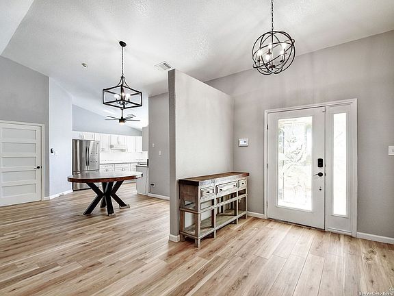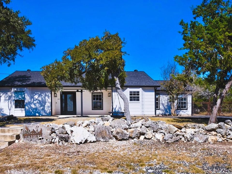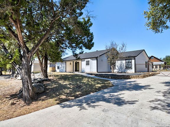 Spacious 2,332 sq ft, 4 Bedroom 2 Bath home on a beautiful large lot. Fenced and gated with a large, attached garage two driveways and covered back porch. Great location with easy commute into SA or Austin. Community Pool, Boat Ramp to Canyon Lake, Community Fishing Lake and great neighborhood park. Front porch with large shade trees in front yard. Extra storeroom space in garage, sprinkler system, walk in closets and alarm system with cameras. Recently updated the entire house. New roof 2022, New A/C 2022, remodeled kitchen and baths in 2024. 4th Bedroom addition added and completed 2025. Higher than average square footage for this neighborhood and the 4th bedroom makes it great for a larger family.