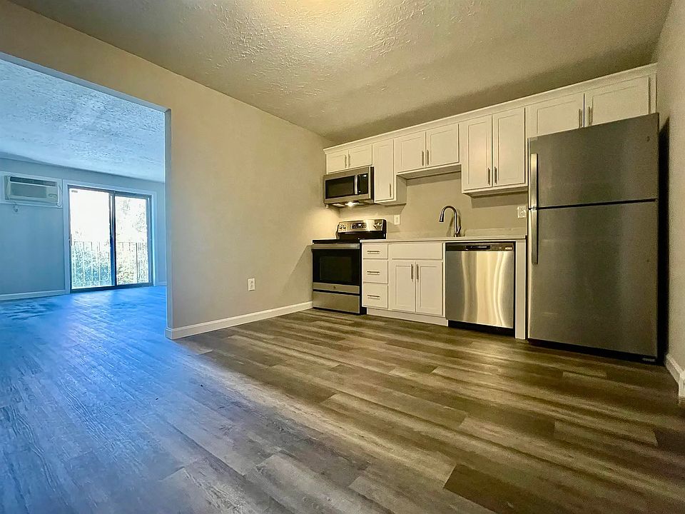 1 bedroom 1 bathroom 2nd floor condo in desirable Tall Pines located in southern Manchester. Features include quartz counter tops and stainless steel appliances, carpet and vinyl planking flooring, updated bathroom and private balcony. Rent includes heat, hot water, water and sewer in addition to landscaping, trash and snow removal. On site laundry in the same building, Assigned parking. Ample natural light in the main living areas.