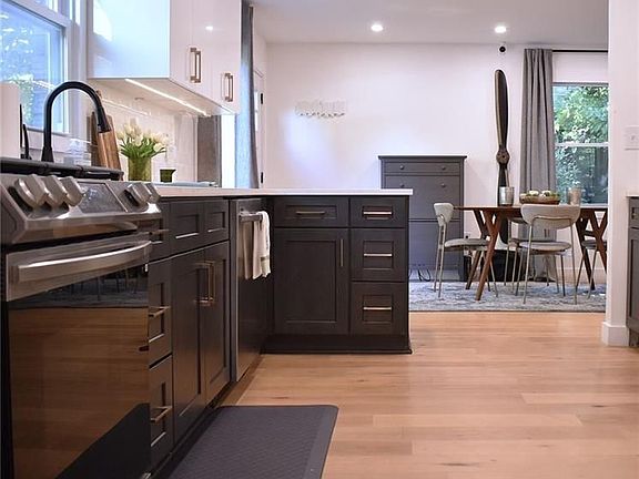This meticulously renovated 3-bedroom, 1-bathroom, primarily brick home has been featured on HGTV and seamlessly blends iconic mid-century architecture with premium modern finishes. Well-maintained and barely lived in, this residence offers soft-close custom cabinetry, quartz countertops, hardwood floors, a newer roof, and updated windows that bathe the interiors in natural light. The bathroom exudes modern elegance, perfectly complementing the home's refined aesthetic. Additional amenities include a gas stove, separate laundry room, contemporary lighting throughout, and an alternate accessible entrance from the driveway that leads directly into a distinctive sunlit secondary living space with flexible uses. The spacious backyard features a producing pecan tree and a majestic magnolia, with fencing along the rear and one side, complemented by a thoughtfully planted privacy hedge on the other. Open yet well-framed, the grounds are graced with mature, natural landscaping that brings both character and tranquility. With a quick drive to Atlanta Hartsfield-Jackson Airport in under 15 minutes, this home is ideal for commuters! It is situated near East Point's Main Street district, Historic College Park, and Hapeville, all known for vibrant dining and entertainment scenes. Public transit can be accessed just steps from the front door, while major highways are conveniently close, ensuring seamless connectivity throughout the City of Atlanta. Within easy walking distance, a charming neighborhood retail plaza features a local restaurant and grocer. Stylish, conveniently located, and move-in ready, this residence combines comfortable living with versatile appeal in a prime location near the airport, ideal for owner occupants and short-term hosts alike. There are no rental restrictions and there is no HOA. The seller welcomes all offers.