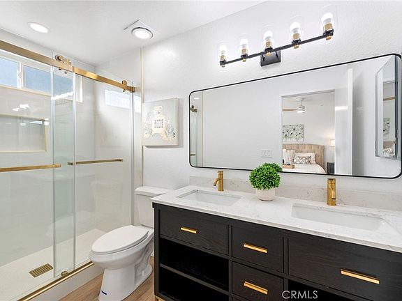 Inside, you’ll find 4 spacious bedrooms and 3 full bathrooms, highlighted by a flexible downstairs guest suite with a beautifully remodeled bath and walk-in shower. Upstairs, the primary suite feels like a private retreat, complete with a dual-sink vanity and sleek walk-in shower. Two additional bedrooms share a fresh, updated bathroom featuring dual sinks and a shower-tub combo. At the center of the home, the redesigned kitchen impresses with white cabinetry, quartz countertops, and a striking backsplash, flowing seamlessly into the inviting family room with its whitewashed brick fireplace. Additional upgrades include new flooring throughout, PEX plumbing and an epoxy-finished 2-car garage. Outdoors, the private side yard offers a charming space to unwind. Ideally situated near top-rated schools, Yorba Regional Park, shopping, and with convenient freeway access and NO HOA! this home combines style, comfort, and Great location in one beautiful package.