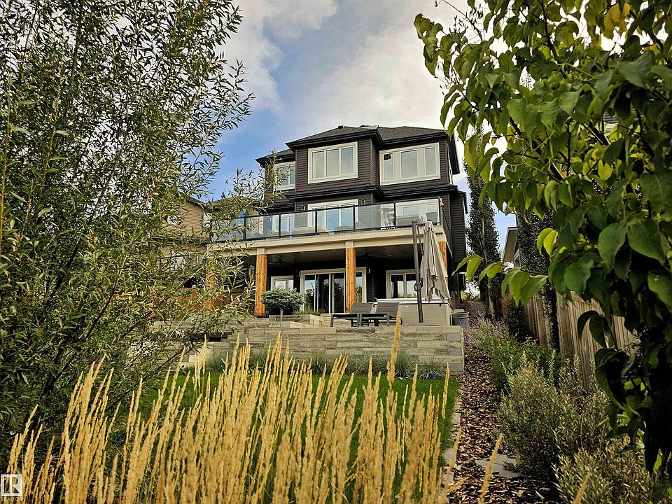 Sweeping custom built 3 bedroom/3 bathroom (w/ bonus room) two-story WALKOUT DREAM HOME BACKING BIG LAKE in the heart of highly desirable community of Hawks Ridge. Airy 2,433+ sq ft. layout is accentuated with golden oak longboard flooring, an abundance of floor to ceiling windows, and soaring 18' great room ceiling detail that bathes the home in warm lake front light. Gourmet kitchen boasts designer waterfall countertop details, high end S/S appliances, walk-through pantry, and large central island that overlooks sun-swept dining and living space. To the side, patio doors lead to elevated patio overlooking private OUTDOOR OASIS w/ $100,000 worth of UPGRADES offering dream indoor/outdoor living. Upstairs reveals open-concept bonus room overlooking the home as well as three bedrooms including oversized primary w/ spa-like mid-century 5 pc ensuite replete w/ walk-in shower, tub, double sinks, and walk-in dressing room. Add'l amenities include OVERSIZED HEATED GARAGE, A/C, mainfloor den, and SOLAR PANELS.