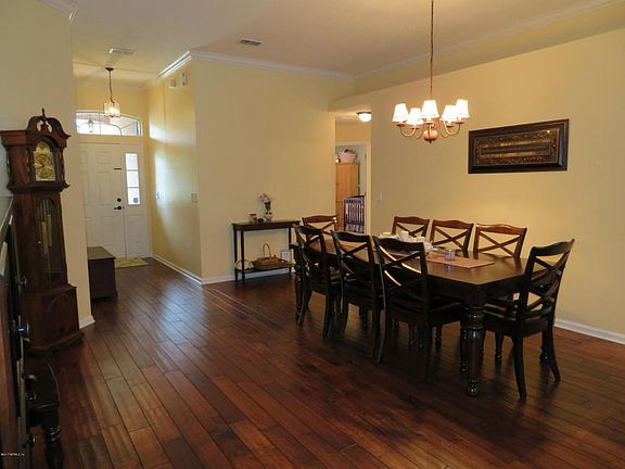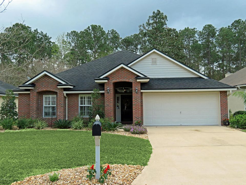 Welcome home to this wonderful 4 bedroom, 2 bath brick home on a premium preserve lot with large fenced rear yard built in 2003 with 1933 square feet of living space in Plantation Grove of Julington Creek Plantation. Nicely upgraded & fantastic floor plan features wood floors, plantation shutters, ceramic tile, custom moldings, fireplace, upgraded lighting, knock down ceiling texture, inside laundry with built in cabinets, recessed lighting, ceiling fans, plant ledges, digital thermostat, & new AC system in 2015. Gourmet kitchen has 42 inch raised panel dark maple cabinets with chocolate glaze, crown molding, built in desk, & rubbed bronze hardware, breakfast bar, granite counter tops, walk in pantry, eat in nook, stone tile backsplash, stainless sink with sprayer feature, stainless dishwasher, smooth top range/self cleaning oven, refrigerator, & built in microwave. Private owners suite has ceiling fan, tray ceiling, his & her walk in closets, ceramic tile, garden tub, separate shower, his & her granite vanity. Exterior features include brick exterior, vinyl soffits, gutters, screened lanai, paver walk way around lanai, 2 car garage with automatic opener, attic stairs, storage cabinets & shelves, professional landscape with citrus trees, large fenced rear yard, & irrigation system. Top rated gated, golf community with amenities for every member of your family is a great place to call home. To see this property call Debbie today!