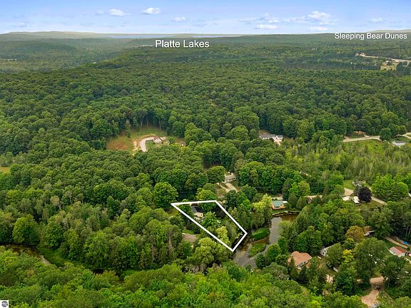 Escape to tranquility in this luxurious home overlooking the Platte River, where the soothing sounds of nature provide the perfect backdrop for relaxation. Ideal for outdoor enthusiasts and nature lovers, this serene retreat offers direct river access, allowing you to launch kayaks and canoes from your private dock for peaceful journeys down the scenic Platte River. During the fall, the river comes alive with Chinook and Coho salmon, steelhead, and trout, offering exceptional fishing opportunities right from your own shoreline. Spend your evenings under the stars, enjoying the company of loved ones and the beauty of the Pure Michigan sky. This home, meticulously renovated in 2012, offers modern comforts and elegant touches throughout. There is a feature sheet noting all the highlights. Located just 25 minutes from Traverse City, you can enjoy a quiet, nature-filled lifestyle with easy access to the city's vibrant amenities and attractions. Discover the charm of Northern Michigan with nearby landmarks like the historic Point Betsie Lighthouse, the cultural treasures of Interlochen Center for the Arts, the breathtaking vistas of Sleeping Bear Dunes National Lakeshore, and the year-round recreational opportunities at Crystal Mountain, from golfing to skiing. Whether you're looking for a place to enjoy water adventures, a peaceful haven surrounded by nature, or a luxurious home close to Traverse City, this Platte River property is your perfect choice. Experience the best of Benzie County and the Pure Michigan lifestyle in this exquisite riverfront home.