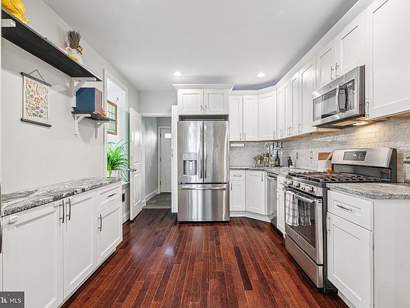 Welcome to this lovingly updated, recently renovated home, steps away from Wharton Square Park! Fully renovated in 2019, this home features original brick detail, recessed lighting, hardwood floors, and custom upgrades throughout. Large windows fill the 1st floor open layout living and dining space with natural light, and the space opens up to the chefs kitchen, showcasing gorgeous granite counters, ample cabinetry, customized spice storage, gas range, and stainless steel appliances. A bonus rear laundry room features additional storage space, and leads to the beautifully finished back patio, perfect for entertaining. The 2nd floor features the large primary bedroom with additional hall closet storage, two spacious secondary bedrooms, and the full bath. Both secondary bedrooms are well-proportioned and the rear bedroom includes a built-in queen-sized murphy bedframe, perfect for the space to function as a dual guest room and office. The full basement is clean and dry, ideal for additional storage. Located on a quiet side street in Point Breeze, on-street parking is plentiful, and the home is only blocks away from the main street shops and restaurants on Point Breeze Ave, the new CVS & ALDI on Washington Ave, and convenient to public transport, 76, Penn, CHOP and more!
