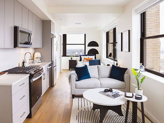 - Exterior features: Bicycle storage, Business Center, Concierge, Custom cabinetry, European white oak flooring, Glass-enclosed shower or bathtub, Guest Room, High-speed Internet Ready, Kitchen island or peninsula, Meal Service, Open layouts, Package Receiving, Quartz countertops, Stainless-steel appliances