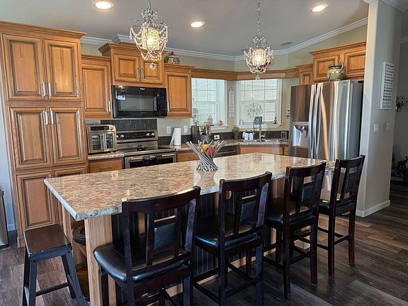 Welcome to this stunning 2017 manufactured home, located in the desirable all-age community of Deerwood. It is just minutes from SR 408, 417, Downtown Orlando, Lake Nona, Waterford Lakes, and Avalon Park. This home offers the perfect balance of peace, privacy, and unbeatable convenience. Step inside to discover a spacious split floor plan filled with high-end finishes. From the moment you enter, you'll notice crown molding, laminate flooring, and chandeliers in every room, adding a touch of elegance throughout the home. The expansive living room is perfect for relaxing or entertaining, and central A/C keeps the home cool and comfortable all year round. The beautiful kitchen is a chef s dream, featuring an abundance of cabinetry and all stainless-steel appliances including a dishwasher, garbage disposal, and refrigerator with ice maker. A washer and dryer are also included for added convenience. Enjoy three spacious bedrooms and two full bathrooms, including a luxurious ensuite primary bath with a dual-sink vanity. Outdoor living is just as inviting, with a screened-in room perfect for morning coffee or evening relaxation. Additional features include a storage shed for your tools and seasonal items, and a carport to protect your vehicle from the elements. Whether you're a first-time buyer, downsizing, or looking for low-maintenance living in a prime location, this home truly checks all the boxes. Schedule your private tour today and come experience the best of Deerwood living!