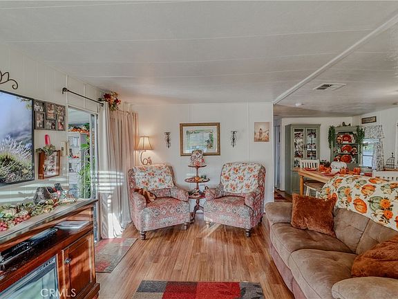 Welcome to Skyline Village, a peaceful senior mobile home community in the heart of Yucaipa. This beautifully maintained 2-bedroom, 2-bath home offers approximately 880 sq. ft. of comfortable living space and is perfectly nestled on a desirable corner lot with quick access to the park entrance.