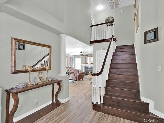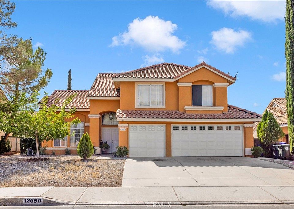Sophisticated double door entry 2 story 3 bedroom and 2.5 bathrooms home boasting over 2,000 square feet of living area offering comfort living. As you walk into the home you are greeted by the high vaulted ceilings that not only add elegance but also make the home feel even more spacious and inviting. The staircase is a standout with a curved handrail and the tall white column at the entry elevates this home. This home offers you a formal dining room that leads you to the open kitchen with white cabinetry paired with stone like backsplash, and a bar providing extra counter space for entertaining or casual dining. The spacious living room has a cozy fireplace. The master suite features direct access to a balcony, creating the perfect indoor-outdoor scape. The master bathroom has a convenient shower and tub and his and hers sink. The laundry room offers you cabinets for storage. The back yard is beautiful and inviting, perfect to entertain family and friends, very nice patio with gazebo and beautiful garden. 3 car garage. Conveniently located near major shopping venues, restaurants and schools Pride of ownership ! The High Desert is now the future home of the recently approved High Speed Train from Apple Valley to Las Vegas and to the south to Rancho Cucamonga. The project is expected to break ground in the Victor Valley soon and be completed in over the course of the next few years, this projected is expected to bring in jobs and boost the economy of the High Desert.