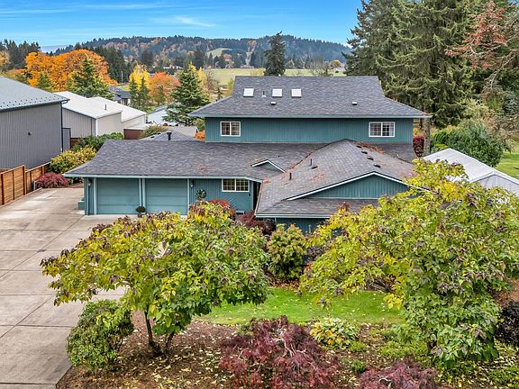 Stunning 5-Bedroom Home with Mt. Hood Views & Exceptional Outdoor Living. This serene cul-de-sac home features 5 bedrooms plus a bonus room and sits on a flat, just under 1 acre usable lot with shop potential and breathtaking Mt. Hood views. The home was fully remodeled and expanded in 1995 by the same creator of the Street of Dreams, the home offers versatile and generous spaces throughout! The primary suite is a retreat with dual sinks, jetted tub, walk-in shower, large walk-in closet, and three additional closets, framed by a wall of windows with unobstructed views. Outdoor amenities include manicured gardens, a small orchard, 16 Japanese maples, a plum tree, a tennis/pickleball court, double-decker very spacious decks with a hot tub, and a cozy fire-pit. Entertain in the oak-floored kitchen with a porcelain island, gas appliances, pantry, and family room with a 10-ft wet bar, flowing to the dining room. Convenient RV/boat parking, storage shed, and barn provide ample space. Recent updates: new roof (2022), furnace (2023), LVP flooring (2024), and newer carpeting. Additional features include a 6th bedroom/home office, 2 AC, skylights, 9-ft ceilings, and central vacuum. Move-in ready, private, and peaceful—with deer often visiting the backyard.
