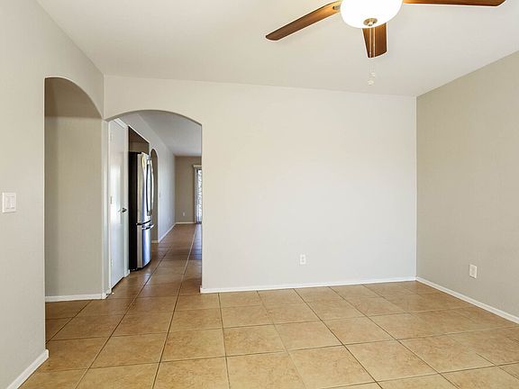 Come see this three-bedroom, two-bathroom rental home in the Sundial neighborhood of El Mirage, Arizona. This property includes more than 1,200 square feet of space and the convenience of single-story living. The kitchen features plenty of recent updates, including stainless steel appliances, a convenient center island, and plenty of storage space. The living area offers attractive tiled floors, a ceiling fan and sliding glass doors leading to the backyard that let in plenty of natural light. In the master bedroom, you'll find a ceiling fan, an en-suite bathroom and lots of closet space. Outside, a fenced-in, xeriscaped yard with a lovely flower bed and covered patio provides plenty of privacy. Schedule an appointment to tour this El Mirage home today.