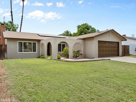 Come check out this fully updated single story home located on a dead end street. Step inside to brand new wood laminate floors located throughout the home. The open floor plan features a brand new kitchen with new cabinets and counters along with stainless steel appliances. The home illuminates new recessed lighting fixtures throughout including the four bedrooms. Both bathrooms have been remodeled as well. The primary bedroom is spacious with an updated ensuite tiled shower. The windows are newer double paned and the roof also boasts 14 paid off solar panels. The home has fresh paint inside and out. Step out back to a spacious grassy backyard with a jacaranda tree and orange tree. The home is close to Grand Terrace High School and central to the 10 and 215 freeways. Come check it out, this will not last!