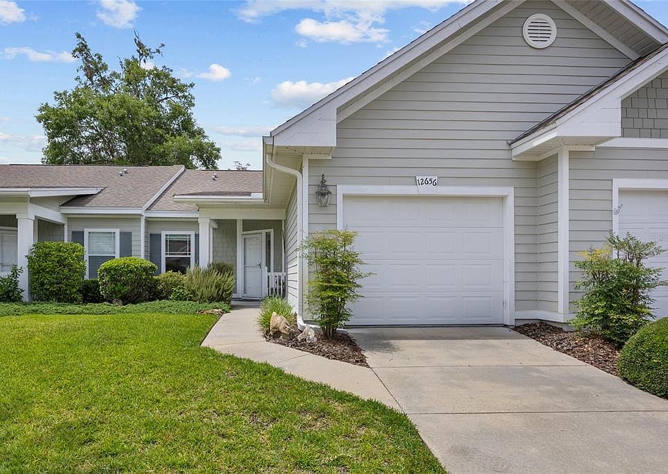 BUYER INCENTIVE>3 MONTHS OF HOA DUES! Welcome home to this cozy 2 bedroom / 2 bathroom townhome with 1 car garage located in the Villas of West End. The open floor-plan is light and bright, with the great room being highlighted by trey ceilings, crown molding and engineered hardwood flooring throughout. NO CARPET! The designated dining area flows seamlessly from great room to kitchen, stainless steel appliances, plenty of cabinets for all your culinary needs, pantry and functional peninsula with breakfast bar for additional seating. The split floor-plan offers the primary bedroom enhanced by a trey ceiling, crown molding and large walk-in closet. Stepping into the en-suite primary bathroom you’ll be greeted by a dual vanity with pocket door separating the glass enclosed walk-in shower area. The secondary bedroom is robust in size with wall closet and secondary full bath with large vanity and tub/shower combo. Bring the outside-in when you open the French doors to the screened lanai overlooking green space with privacy buffer. Laundry room features washer/dryer with additional cabinets and 1 car garage has attic access perfect storage for all those seasonal items. HOA provides front and rear yard lawn maintenance, exterior building maintenance including roof and pest control. Enjoy all the HOA amenities including clubhouse with weekly activities and programs, choice of 2 pools, tennis courts, pickleball courts and outdoor pavilion with dining area. Located just minutes from grocery, entertainment, dining, medical and Gainesville.