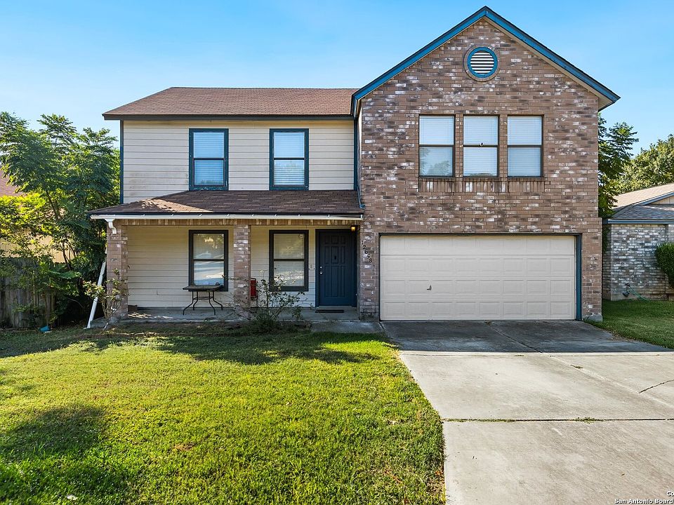 ***Assumable VA Loan at 3.25% to qualified Buyer*** Spacious 4-bedroom, 2.5-bath, two-story home located in the established community of Hunters Chase. This inviting property features an open floor plan with a large living room that flows into a separate dining area-perfect for gatherings or entertaining. The kitchen offers generous storage, a large pantry, and plenty of workspace for everyday cooking. Upstairs, the enormous primary suite spans nearly half the second floor, offering a large bedroom, a huge walk-in closet, and a private bath. Secondary bedrooms include ample closet space, providing comfort and convenience for everyone. Recent updates include an upgraded main breaker box for added peace of mind. Step outside to enjoy a full-width back deck with a misting system, a sprawling lawn, a storage shed, and a privacy fence-ideal for outdoor relaxation or weekend barbecues. Located near Bamberger Nature Park, great schools, shopping, and easy access to Loop 1604. Schedule your personal tour today!