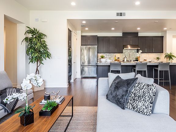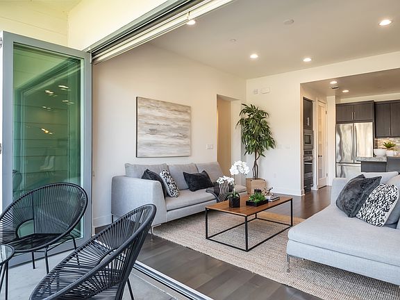 Incredible south facing 4 bedroom home positioned on a beautiful park. With just three homes per building plus your own entrance and two car private garage this home offers amazing privacy. The large open kitchen, living room and dining room flow out to an oversized patio with accordion doors ideal for indoor/outdoor living. The amazing chef's kitchen includes Jenn-Air stainless steel appliances, large farm style sink, soft-close cabinets, walk-in pantry and beautiful island. Master bedroom opens into the stunning master bathroom with dual vanities, separate shower and soaking tub. 2 additional guest rooms share a spacious jack and jill bathroom. Downstairs you will find another living space plus a bedroom and full bathroom. This home includes solar panels, a tankless water heater and wiring for an electric vehicle charger. Membership to the exclusive Resort Health Club is included. Nearby, you'll enjoy the Cinemark Movie complex. Whole Foods, HopDoddy, YogaWorks Studio and much more.