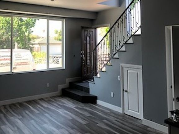 A modern two-story Valley Glen home of 1,111-sqft and two beautifully spacious bedrooms plus two and half bathrooms! Trendy grey tone laminate flooring and recessed lighting are installed throughout which accentuates the overall spacious feel of each room. The adjoined step-down living room and dining room enjoy a large picture window that draws in natural light. The open kitchen is complete with built-in stainless-steel appliances and stone countertops adoring neat white cabinetry. Each bedroom includes generous closet space while each bathroom features walk-in showers. As a great plus, this home includes an in-unit closet laundry area, gated parking in front for one car, and use of a side front and side yard. Residing nearby Whitsett Sports Field, James Madison Middle School, LAVC, NoHo Arts District, local bakeries, markets, shopping centers, easy access to the Hollywood Freeway, and much more! Enjoy Valley Glen today!