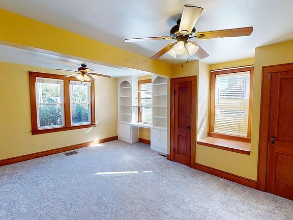 Covered front porchEnclosed back porchDual closetsBrand-new carpetBuilt-in shelving