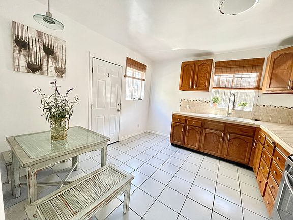 Tiled kitchen with appliancesBright and airyCool eat-in kitchenHardwood and tile floorsLarge bedroomFull tiled bathroomCeiling fans