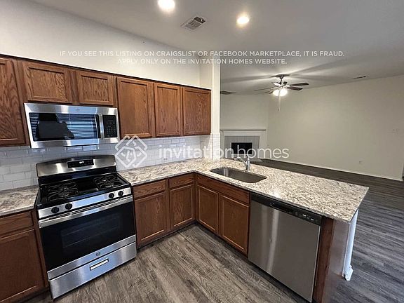 Lease this home and get more from Invitation Homes professional property management. This home comes fully loaded with quality amenities, must-have services, high-end tech and 24/7 emergency maintenance. Your estimated total monthly payment is $1943.90. That covers your base rent, $1799.00 + our required services designed to make your life easier: Air filter delivery ($9.95), Internet package ($85), Smart Home with video doorbell ($40), and Utility management ($9.95). We've built value into your lease with ProCare it's free! Our team of qualified professionals will take care of your home maintenance while you focus on the things that matter. And you get access to our exclusive resident offers with discounts to some of our favorite brands. This is the house you've been looking for. It's welcoming, stylish and comfortable. A breathtaking entryway and a functional design all come together to make a comfortable interior ready for you to transform it into your ideal home. Luxury vinyl plank flooring runs throughout the home's living area. The open living area gives you plenty of space for a dining room and entertainment area right by the fireplace. The comfortable kitchen space is complemented with granite countertops, premium cabinets, and stainless-steel appliances. Meal times and household gatherings will be even sweeter in this kitchen space you can make your own. Turn this fenced backyard into your ideal outdoor space. Set outdoor meals on the patio, make room for outdoor plants and decorate as you see fit to make the yard a space that reflects your sense of style. Apply online now! This home is located within the service area where our Internet Package is required, it will be equipped with high-speed internet and media streaming capabilities at just $85 per month, a great value. This monthly fee will be required in your lease. At Invitation Homes, we offer pet-friendly, yard-having homes for lease with Smart Home technology in awesome neighborhoods across the country. Live in a great house without the headache and long-term commitment of owning. Discover your dream home with Invitation Homes. Our Lease Easy bundle which includes Smart Home, Air Filter Delivery, and Utilities Management is a key part of your worry-free leasing lifestyle. These services are required by your lease at an additional monthly cost. Monthly fees for pets and pools may also apply. Home Features and Amenities: Air Conditioning, Fenced Yard, Fireplace, Garage, Granite Countertops, Long Lease Terms, Luxury Vinyl Plank, Open Floorplan, Patio, Pet Friendly, Primary Bedroom on Main, Recessed Lighting, Single Story House, Smart Home, Stainless Steel Appliances, Walk in Closet, W/D Hookups, and professionally managed by Invitation Homes. Invitation Homes is an equal housing lessor under the FHA. Applicable local, state and federal laws may apply. Additional terms and conditions apply. This listing is not an offer to rent. You must submit additional information including an application to rent and an application fee. All leasing information is believed to be accurate, but changes may have occurred since photographs were taken and square footage is estimated. Furthermore, prices and dates may change without notice. See InvitationHomes website for more information. Beware of scams: Employees of Invitation Homes will never ask you for your username and password. Invitation Homes does not advertise on Craigslist, Social Serve, etc. We own our homes; there are no private owners. All funds to lease with Invitation Homes are paid directly through our website, never through wire transfer or payment app like Zelle, Pay Pal, or Cash App. For more info, please submit an inquiry for this home. Applications are subject to our qualification requirements. Additional terms and conditions apply. CONSENT TO CALLS & TEXT MESSAGING: By entering your contact information, you expressly consent to receive emails, calls, and text messages from Invitation Homes including by autodialer, prerecorded or artificial voice and including marketing communications. Msg & Data rates may apply. You also agree to our Terms of Use and our Privacy Policy.