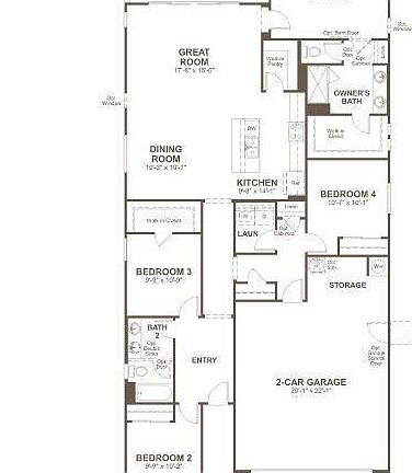 The ranch-style Larimar plan offers a seamless blend of style, comfort and functionality. The heart of this home is its open, airy kitchen, which features a center island, walk-in pantry and dining room, and flows into an inviting great room with an adjacent covered patio. The large owner's suite boasts a well-appointed bath with an oversized walk-in closet, and three additional bedrooms provide ample space for rest and relaxation.