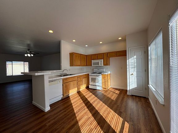 MOVE IN SPECIAL - $500 off first month's rent with a one-year lease. 4 bedroom / 2 bath / 2 car garage / 1484 sq. ft. approx. / gas kitchen range / microwave / laundry hookups / large, fenced back yard / AC / work bench in garage / tenant pays all utilities / tenant must supply refrigerator/washer/dryer / Landscaped in front / fenced back yard. Tenants to maintain landscaping, yard and weed property.