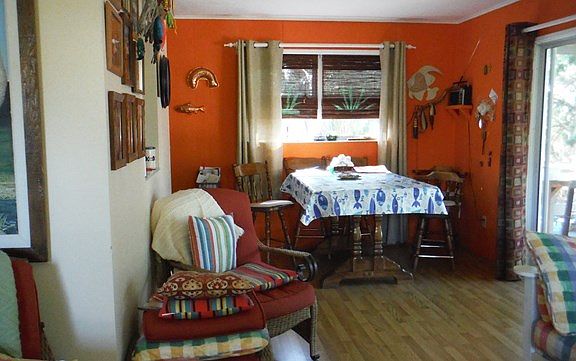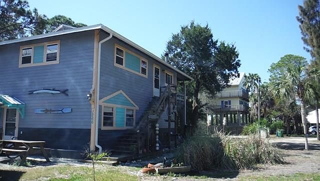 Comfortable living End of cut de sac, with VIEWS! Deeded canal access, build a dock into the gulf canal. Well maintained home comes furnished, including a season's worth of wood for the wood stove, or use the central HVAC. Up is 2/1, down is used as studio/storage, workshop, but could be converted back to separate apartment, or game room, or 2 bedrooms with sitting area & full bath. Washer/dryer in large walk in pantry off kitchen. Jacuzzi tub up. Screen porch up, open shaded patio down. Large trees shade for maximum summer efficiency. Large yard, plenty of room for your boat, metal carport/canopy for additional storage. 2 air handlers, 10 years old, vinyl siding, '96 shingle roof, flood remediation walls down. Golf cart ride to town!