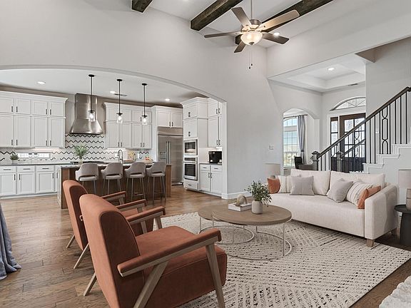 Extended covered patioFormal dining roomHigh-end upgradesCustom draperyBuilt-in fridgeSparkling quartz countertopsDeep soaking tub