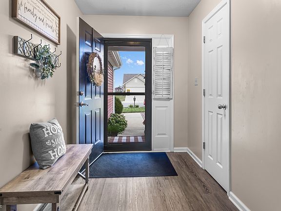 Welcome home to this beautifully maintained 3-bedroom, 2-bath ranch built in 2018, offering the perfect blend of comfort, style, and convenience-all on one level. Step inside to find LVP flooring flowing seamlessly through the main living areas and a large custom kitchen island that serves as the heart of the home. The kitchen comes fully equipped with all appliances, while blinds on every window provide added privacy and style. The primary suite features double sinks and a spacious layout designed for relaxation. Enjoy outdoor living on the covered front porch or the stamped concrete rear patio with pergola, perfect for entertaining or quiet evenings under the stars. A privacy fence encloses the backyard, creating your own private retreat. Additional highlights include a finished 2-car garage with overhead storage, ensuring plenty of space. Located just minutes from the quaint and charming downtown Fortville, you'll have easy access to local favorites like FoxGardin Kitchen & Ale, Du Lit, The Kitchen on Main, Taxman Brewing Co., and Cortona's Italian Cuisine. Outdoor enthusiasts will love nearby Flat Fork Creek Park, a 60-acre park that features a lake, nature trails, sledding hill, mountain bike course and more. Don't miss this opportunity to own a move-in ready home that perfectly combines modern amenities with small-town charm.