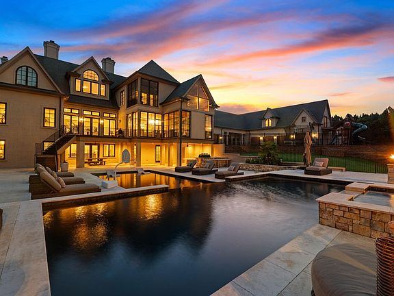 Unparalleled luxury, privacy, and function converge on this extraordinary 14.22-acre estate just north of Falls Lake. Fully fenced and gated for total seclusion, yet minutes from RTP, RDU, top universities, and fine dining. Extensively renovated with high-end finishes and designer details, this home blends modern elegance with timeless design—featuring a grand floating spiral staircase, 11 garages, and state-of-the-art systems including, generator, and reverse osmosis water filtration. The gourmet kitchen impresses with custom cabinetry, an oversized island, and adjoining hearth room, opening to a four-season porch with fireplace—perfect for year-round entertaining. The lavish primary suite offers a private sitting room with fireplace, four-season balcony, home office, laundry, and incredibly expansive his-and-hers private boutique dressing room that showcases custom cabinetry lining the walls, open shelving, soft-close drawers, dedicated hanging spaces and a large island with marble countertops. Elegant designer lighting, including recessed fixtures and statement chandeliers, highlights every detail and adds a warm inviting glow. The sitting area creates a comfortable space to relax or plan outfits. A private entry guest/in-law/Au Pair suite is accessible from the interior and exterior of the home. In the basement, enjoy a full home theater, gaming area, gym with sauna, salon, kitchenette, and bedroom with private bath. Outdoor living is next level: a heated, multi-tier saltwater pool with limestone deck, elevated spa, and waterfalls; a pool house with fireplace and kitchenette; a full basketball court; greenhouse; outdoor kitchen with built-in grill and cooler; temperature-controlled 6-bay kennel with wash station; playground; uplighting; and even a helicopter landing area. Opportunities like this are rare—schedule your private tour today to experience the lifestyle this extraordinary property offers.