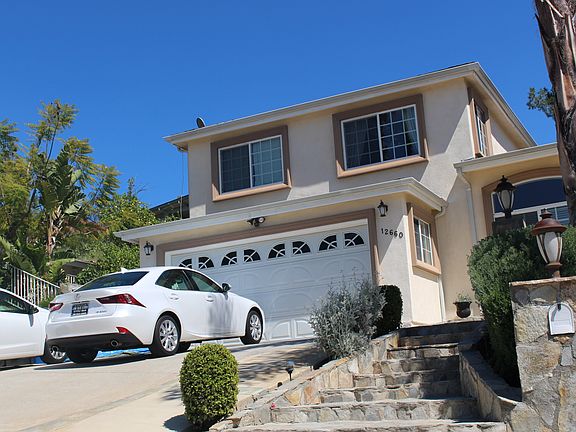 Please do not disturb the tenants. Beautiful whisper quiet cul-de-sac home in prominent Granada Hills neighborhood. Grand curb appeal with recessed entry way and lavish front yard. Dramatic wroth iron door entrance into a foyer with 12’ ceiling. Elegant formal living room and dining room with soaring 12' ceilings, hardwood (maple) & marble floors. Big and bright kitchen updated from original with hardwood (maple) cabs, granite countertop with an extended peninsula. Voluminous two master bedrooms featuring large walk-in closets, balcony and backyard access and private bath featuring marble flooring and a luxurious Jacuzzi. Peaceful backyard with a covered patio and a BBQ grill. The backyard presents two elevated seating areas with a lavish cascade fountain and a large grass area. Home was completely remodeled in 2009 all permit are available per request. Upgrades include: copper plumbing, tank-less energy efficient water heater, separate central heating and A/C units for first and second floors, upgraded windows and doors, wroth iron custom made railings. Award winning Van Gogh school. Beautiful view to the valley. Priced at $293 per SF