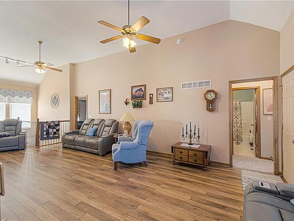 Charming ranch in sought-after Olathe Schools! One-level living with main floor master and laundry. Bright eat-in kitchen plus a bonus sunroom/dining room. Walkout lower level offers a large rec room, bedroom, and bath—perfect for guests or extended family. Enjoy outdoor living on the deck with awning or the covered patio below. Situated on a large fenced cul-de-sac lot with a handy storage shed. Additional workshop/single car garage in the basement for the ultimate hobby or outdoor fanatic. One owner home shows pride in ownership. BONUS -- New roof in summer 2024 with transferable warranty.