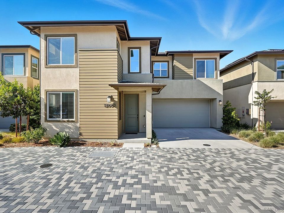 Built in 2022, this stunning 4-bedroom, 3-bathroom home in the highly sought-after Arlo community, offers 2,493 sq. ft. of modern living smart technology, and everyday comfort. Step inside to an open concept layout enhanced by Kent Oak luxury vinyl plank flooring throughout. A convenient downstairs bedroom offers flexibility for live-ins, in-laws, or overnight guests. The chef’s kitchen showcases stainless steel appliances, Biancone quartz countertops, and sleek smoke shaker cabinets. Everyday living is made simple with a WiFi enabled oven and dishwasher, washer and dryer, smart Rinnai tankless water heater, water softener, and Flo by Moen smart water monitor. Designed with luxury and efficiency in mind, it boasts OWNED solar, EV charging, and a full smart home system with WiFi-enabled appliances, Ring security with door and window sensors, Eero mesh WiFi, Ethernet wiring to every room, and programmable smart light switches. Custom touches add warmth and character, from the built in fireplace and TV wall in living room to the playroom cabinetry, a custom glass partition for aesthetics and safety, designer wood trim accent walls, and a backyard finished with turf and pavers for easy entertaining. Located within the top-tier Poway Unified School District, families will enjoy a variety of incredible schools for kids to attend. At Arlo, enjoy resort-style amenities including a pool, spa, BBQs, lounge areas, bathrooms, showers, and a playground, with front yard maintenance included. Just a short walk to new retail with pilates, coffee, a wine bar, and even a salon.