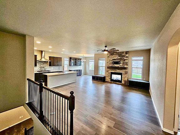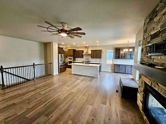 Built in 2021 with upgrades from top to bottom! LVP flooring and modern lighting through open concept main level common areas. Living room includes indoor/outdoor double sided fireplace with stone surround. Dining area with additional cabinetry walks out to covered patio and fenced backyard with salt water hot tub and dog run! Property backs to greenbelt with walking path! Gourmet kitchen features large island, quartz countertops, complimentary backsplash, convection oven, gas range/vent hood and pantry! Master suite on main level includes walk out to back patio, attached 5 piece bath with dual vanities, large shower and walk in closet! Additional bedroom on main level makes for great flex/office space! Finished basement provides large family room with wet bar and wine fridge, breakfast nook, and two additional bedrooms! Additional property amenities include central air, 3 car garage, central vac system, toe kick vacuum under kitchen sink, Sonos surround system in basement and more! Located close to schools, parks, hiking/biking trails and more! Metro dues included in tenant paid water bill, provides access to amenities in the neighborhood.