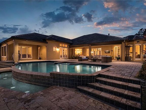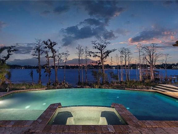Discover the only single-story lakefront home available under $2 million on the prestigious Lake Sawyer. This rare opportunity offers unmatched privacy, breathtaking views, and true single-level luxury in one of Windermere’s most desirable neighborhoods. With 5 bedrooms, 3.5 bathrooms, an office, and a 3-car garage, this home blends comfort and sophistication. Inside, you'll find engineered hardwood floors, travertine tile, and elegant crown molding throughout. A 50-gallon in-ground gas tank powers the gas cooktop, water heater, and fireplace, making the home both efficient and inviting. Recent upgrades include two HVAC units installed in 2021 with transferable labor coverage through 2031 and a 12-year parts warranty, a gas water heater (2017), dishwasher (2021), and an expanded patio with a new retaining wall (2019) — perfect for enhanced outdoor entertaining. The primary suite is expansive, featuring a private sitting area with panoramic bay windows that showcase the lake. The spa-inspired bath includes a double-entry walk-through shower, whirlpool tub, and dual vanities. The outdoor living space is a showstopper — with a multi-level deck, covered lanai, and a stunning infinity pool complete with jacuzzi and waterfall, all overlooking Lake Sawyer. Located in the Lakes of Windermere, residents enjoy access to a fishing pier, playground, park, and community pool, with just a short drive to Downtown Windermere, Disney Springs, shops, restaurants, and major roadways. This is lakefront living at its finest — and it won’t last long.
