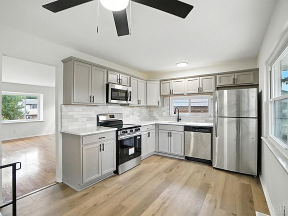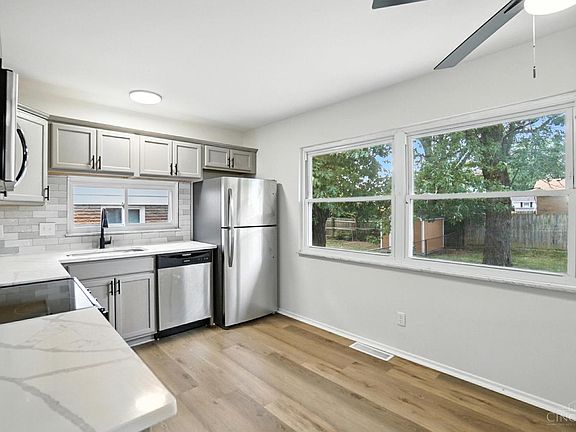 Welcome to this beautifully remodeled 3-bedroom, 1.5-bath quad home, filled with charm and modern updates. The inviting family room and bedrooms showcase polished hardwood floors, while LVP flooring adds durability and style elsewhere. The updated kitchen is complete with granite countertops, an under-mount sink, and new stainless steel appliances. A spacious full basement provides endless possibilities, and a brand-new hot water heater adds peace of mind. Enjoy the fenced-in backyard with a patio, perfect for cookouts and relaxing weekends. With a 1-car garage and elegant finishes throughout, this home is ready for you to move right in and enjoy!
