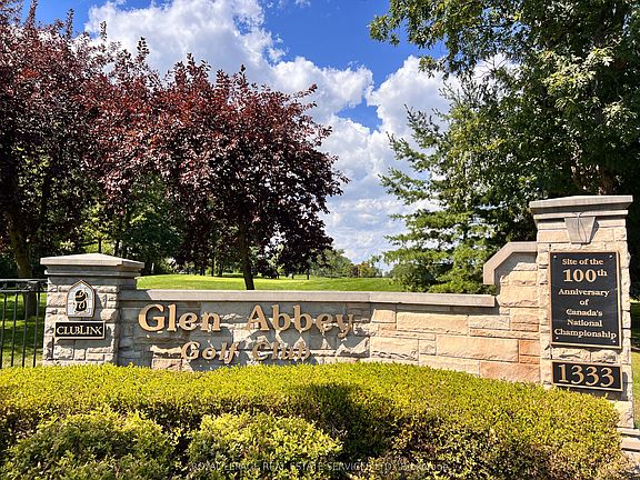 LUXURY LIVING ON GLEN ABBEY GOLF COURSE! Discover Forest Ridge, an exclusive enclave in sought-after Glen Abbey. Perfectly positioned beside Glen Abbey Golf Course and Sixteen Mile Creek, this executive end-unit townhome with a rare two-car garage delivers over 2,800 square feet of refined living space, exceptional privacy, and lush tree-lined views. Indoor-outdoor living is at its best with two private terraces and a backyard patio, creating ideal spaces to relax or entertain. The main living level features 9' ceilings, hardwood floors, a sun-filled living room, large family room, and a formal dining area. The thoughtfully designed kitchen offers built-in appliances, abundant cabinetry, and plenty of room to connect with family and friends. Upstairs, the primary retreat feels like a private oasis with a large walk-in closet, spa-like five-piece ensuite with double sinks and soaker tub, and French door walkout to a terrace showcasing stunning views. Two additional bedrooms, a three-piece bathroom, and a convenient laundry room complete this level. The ground floor offers even more flexibility with 10' ceilings, a spacious recreation room with gas fireplace and walkout to the patio, plus a mudroom and generous storage. Notable upgrades include updated lighting on the second level (2024), a newer furnace (2024), and additional storage space off the garage. Forest Ridge residents enjoy a meticulously maintained community with landscaping and snow removal included for carefree living. Close to top-rated schools, golf, trails, shopping, restaurants, highways, and the GO Station, this neighbourhood offers the ultimate blend of luxury, nature, and convenience. (some images contain virtual staging)