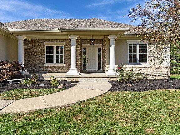 Beautifully maintained ranch home set on a quiet, private cul de sac with mature trees, just minutes to shopping, dining, parks, the airport, downtown, and New Albany. A light filled open layout centers on the great room with fireplace and flows to a generous den or office for work, hobbies, or extra lounge space. The kitchen features granite counters, a gas cooktop, double ovens, and a walk-in pantry. The private primary suite offers a tray ceiling and a spa style bath. Convenient first floor laundry adds everyday ease. A full lower level provides excellent storage or the option to create additional living space. Recent updates that add peace of mind include a newer roof, newer HVAC with furnace and AC, a new hot water tank, refreshed lighting and ceiling fans, and newer hardwood floors. Practical, low maintenance, and close to everything. This one checks all the boxes.
